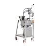 Mașină pneumatică semiautomată potrivită pentru umplerea și închiderea pungilor flexibile, cum ar fi doypack-urile (cu cioc pre-sudat), cu produse lichide și/sau semi-dense, prin intermediul unei pompe dozatoare volumetrice Doselite.