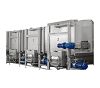 - Apa care se scurge de pe recipiente este colectată în bazine și recirculată la duze pentru reutilizare.